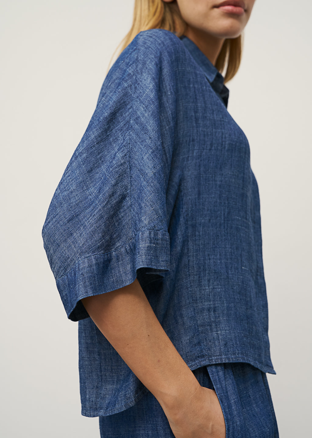 Diese Kurzarm-Bluse von 0039 ITALY aus hochwertigem Lyocell-Leinen-Mix überzeugt mit ihrem modernen Oversize-Schnitt und angenehmem Tragekomfort.