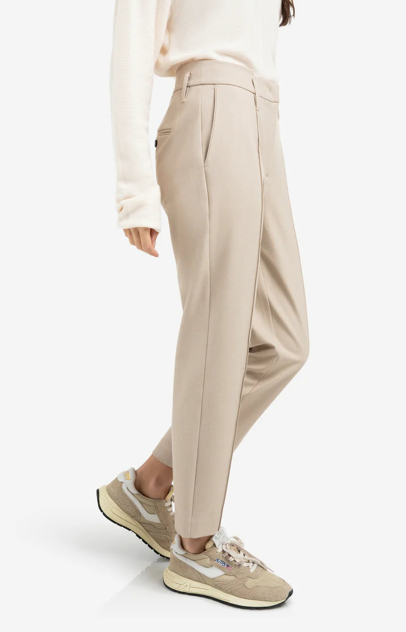 Der Bund verjüngt sich vorne dezent und verleiht der Hose dadurch eine moderne Note.