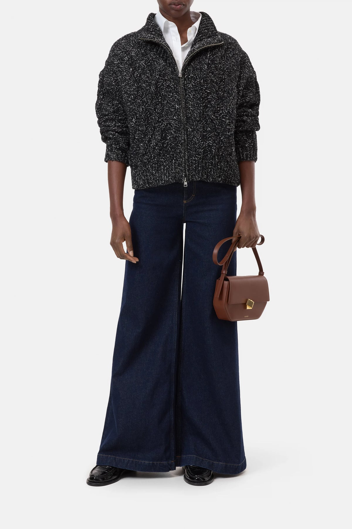 Die Strickjacke hat eine Rippstruktur an Kragen, Ärmelbündchen und Saum und verfügt über einen 2-Wege-Reißverschluss für vielseitige Trageoptionen.