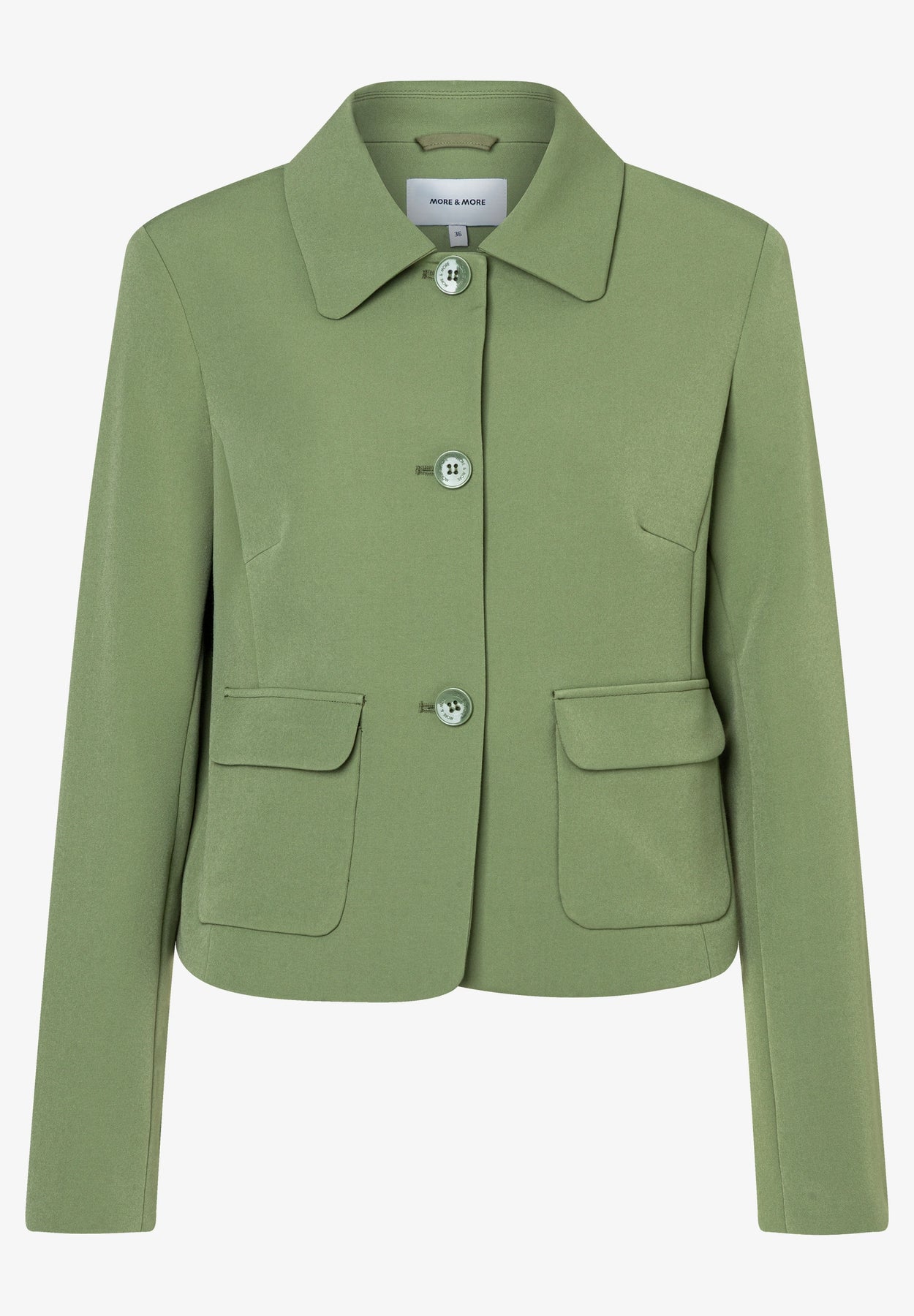 Normaler Preis CHF 179.00Den kurzen Blazer mit aufgesetzten Taschen und Kragen von MORE & MORE können Sie mit passender Hose zu einem stilvollen Business-Outfit kombinieren, er passt aber genauso gut zur sportiven Jeans oder zum fliessenden Meshrock.