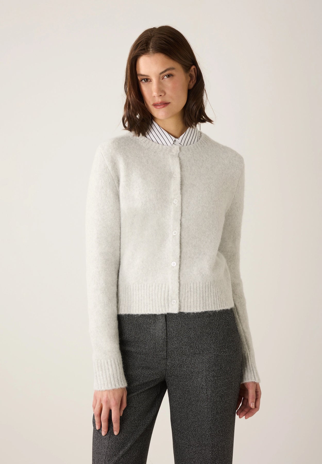 Ob zur weiten Marlenehose, lässigen Jeans oder zum fließenden Meshrock - diese unkomplizierte Strickjacke ist die perfekte Wahl für vielseitige Alltags-Looks.
