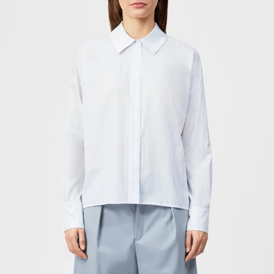 Normaler Preis CHF 179.00CLOELIA von DRYKORN ist eine klassische Langarm-Hemdbluse mit dezentem Streifenmuster und Hemdkragen.