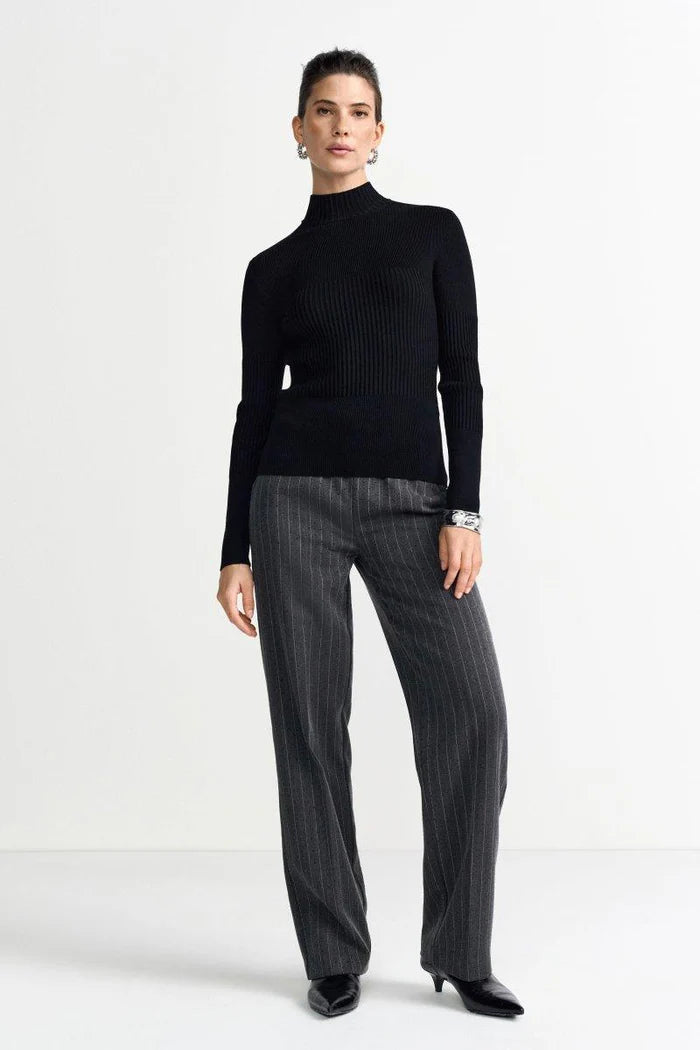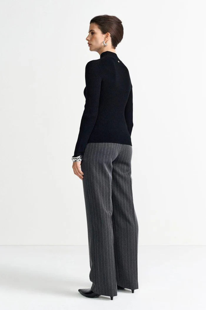 Normaler Preis CHF 175.00Dieser schwarze Rippstrickpullover von RICH&ROYAL mit schmalem Stehkragen und variierender Rippstruktur ist elegant unter Blazern und Cardigans kombinierbar.