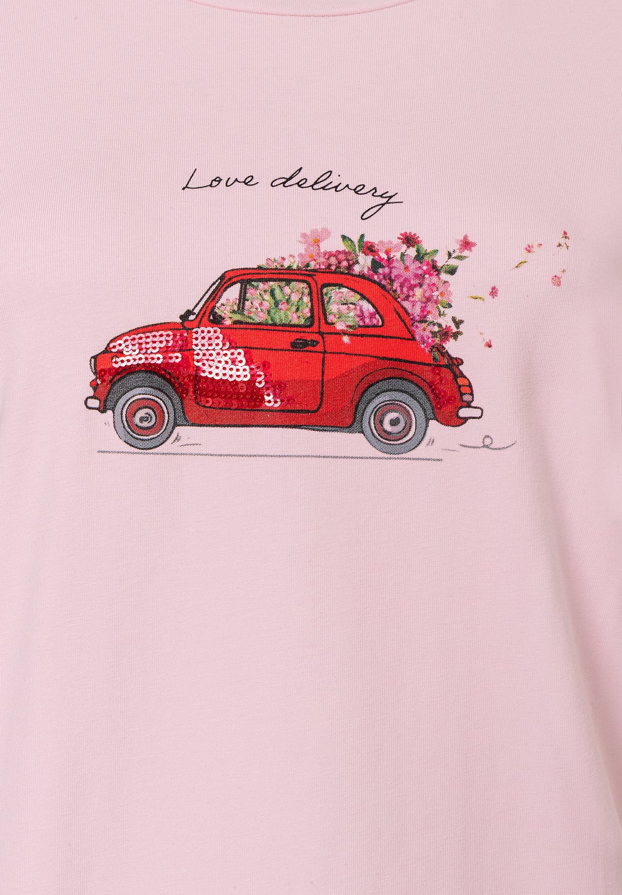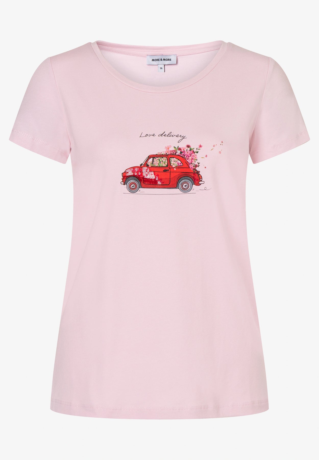 Das feminine Kurzarmshirt von MORE&MORE begeistert mit liebevollem Print und applizierten Pailletten auf der Front und lässt sich sehr vielseitig kombinieren.