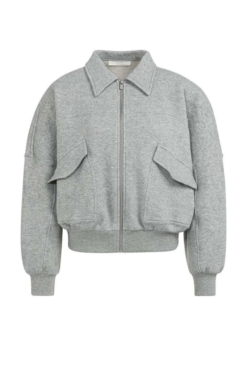 Sie hat einen Umlegekragen, einen Reißverschluss und grosse aufgesetzte Pattentaschen, die für einen modernen, funktionellen Look sorgen.